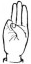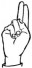 На ћирилици написано МИЛОШ ТРИКОШАНИН састоји се из 15 слова [?]. Исписано ћириличном једноручном азбуком за глувонеме: